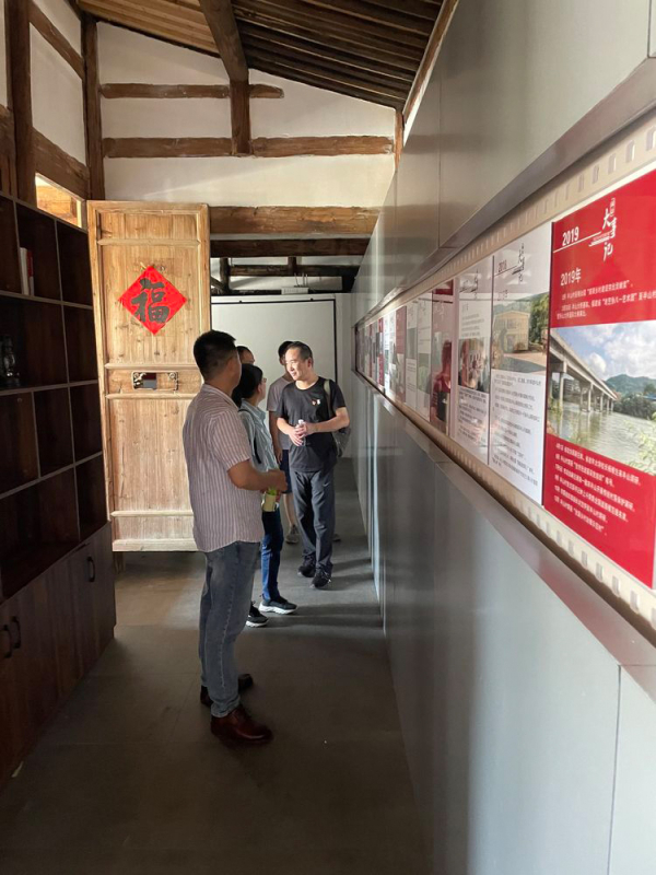 从“三诚”文化广场出发,来到望桂民宿。屋外半亩荷花含苞待放,屋内远眺半露的树梢,正应了朱熹的那句“半亩方塘一鉴开”和“望桂”这一名字。在望桂民宿内,讲解员详细讲述了“合作社+项目团队+村民”的发展模式,现场体验古民居修缮改造后集吃、住、玩为一体的网红打卡点,半掩的木门散发出的老房子木头味和以无人值守为特色的“望桂小铺”,将乡愁和现实的结合表现地淋漓尽致。