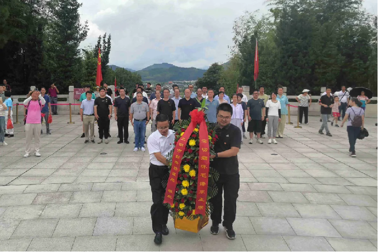 会址北侧的毛主席纪念园依山而建,庄重肃穆。大家拾级而上,来到毛主席纪念园,瞻仰毛主席雕像,选派代表敬献花篮,带领大家向毛泽东雕像三鞠躬,瞻仰毛泽东雕像,深切缅怀老一辈革命家的丰功伟绩,表达对伟人的敬仰,进一步感悟入党初心、凝聚前行动力。