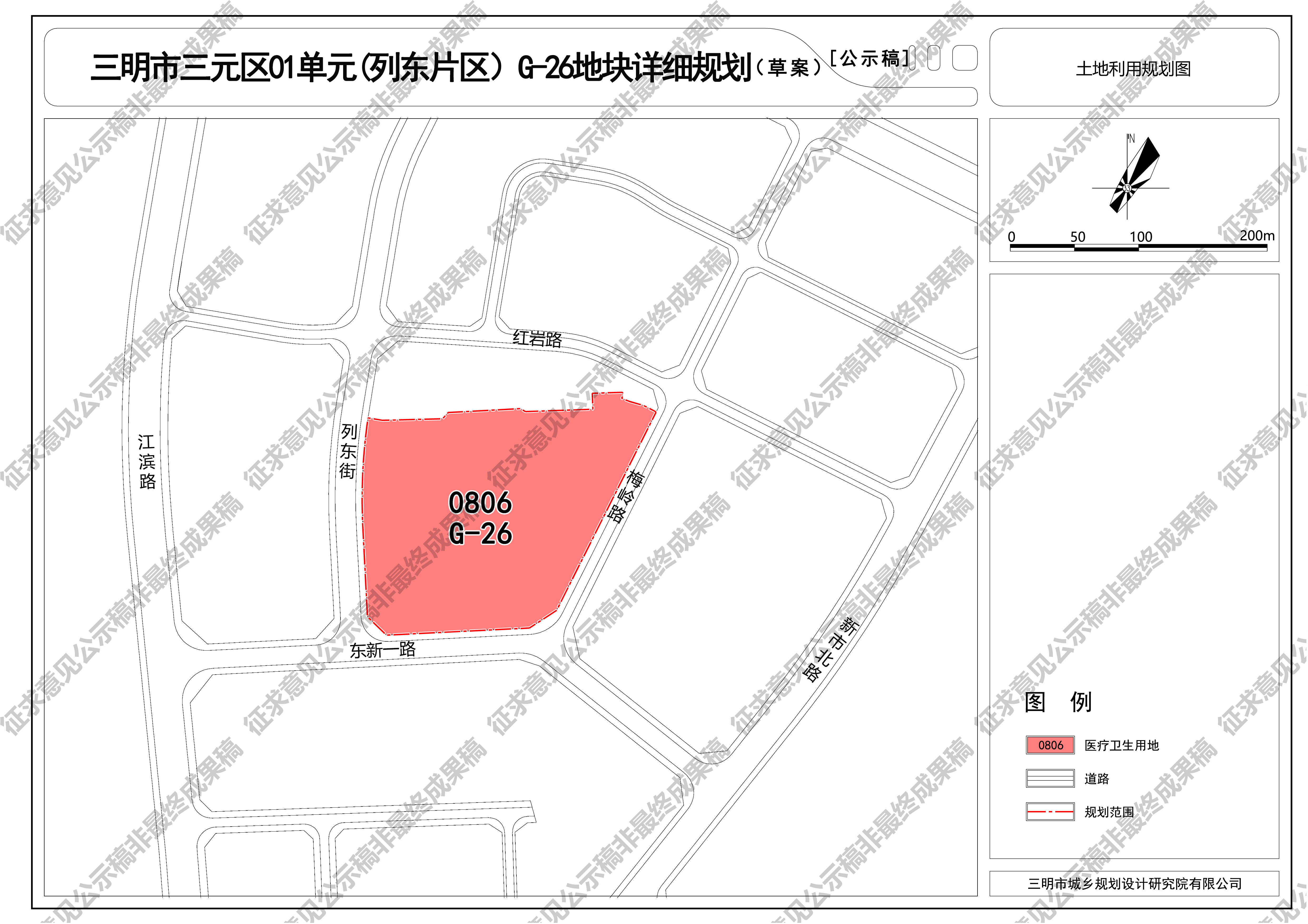 [公告]三明市三元区01单元(列东片区)G-26地块 详细规划(草案)公示